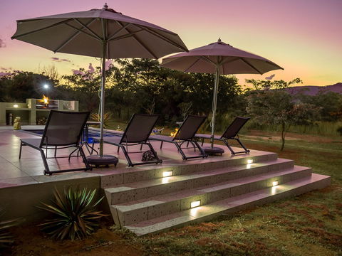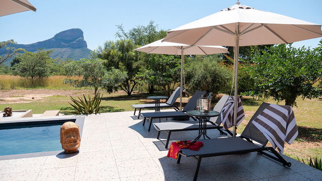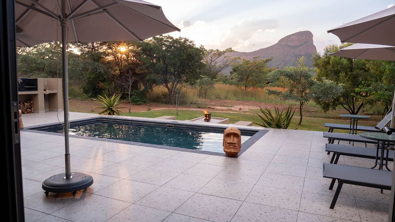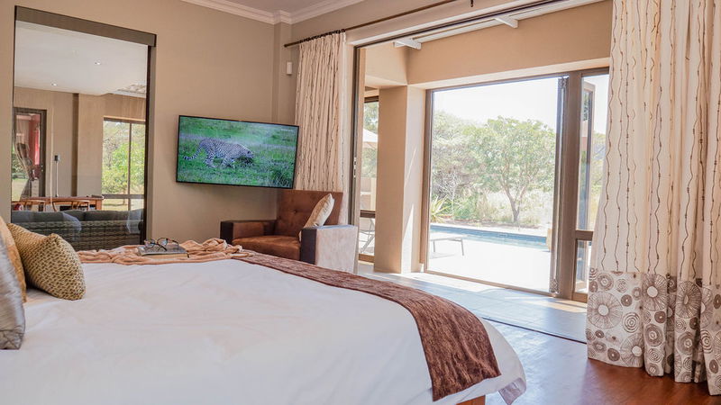 Mountains Mark 141, a spacious luxury residence ideal for groups, featuring elegant interiors, a private pool, boma area, and scenic bush views.