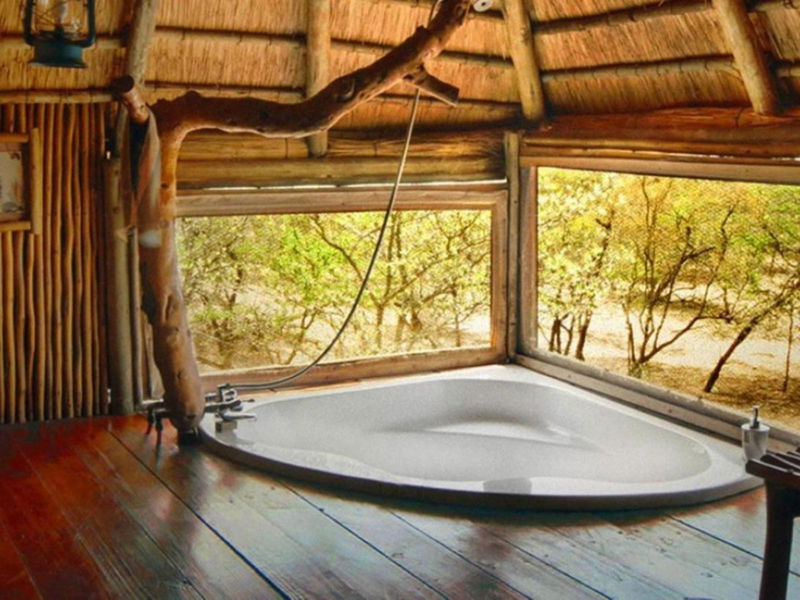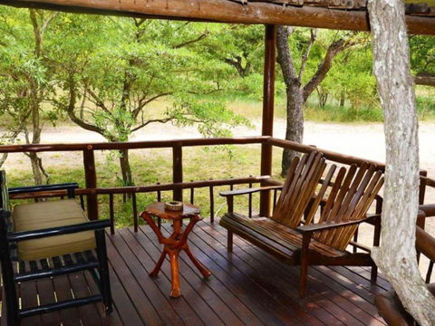 After a day of adventure, guests can unwind in the lodge's main building, which features a cozy lounge, dining area, and a curio shop. The thatched structure is interwoven with a large Marula tree, adding to the lodge's rustic charm. Evenings are best spent around the campfire in the traditional boma, sharing stories under the starlit African sky.